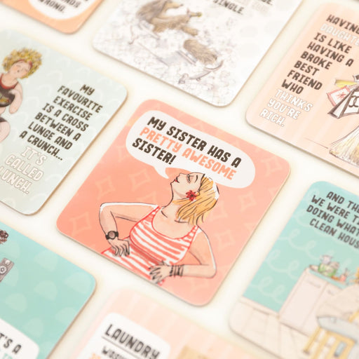 Say goodbye to dull, ordinary coasters and add a splash of fun to your coffee table! Our quirky sisters coasters are designed to protect your surfa...