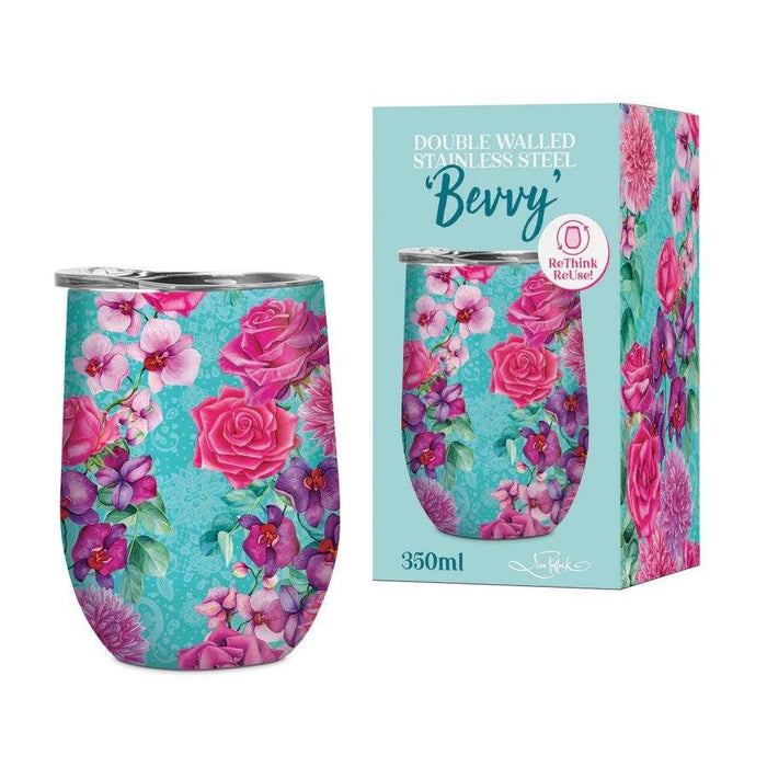 Made from superior stainless steel and double walled, this travel bevvy in Rose Bouquet design will keep beverages cool for 12 hours and coffee hot for 6 hours! Complete with a spill proof lid and space for a straw to enjoy your beverages.