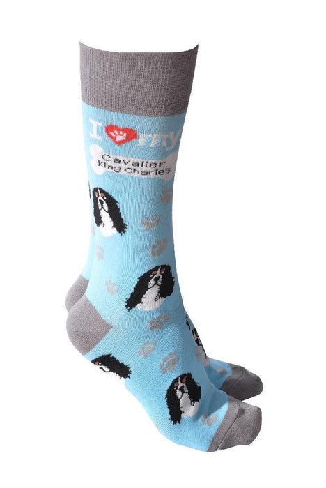 These pawsome dog socks in Cavallier King Charles design are a ONE SIZE FITS ALL!