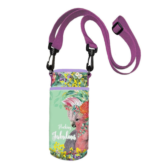Our neoprene carry-all in Flocking Fabulous design will leave your hands-free and keep your bottle cool at the same time.