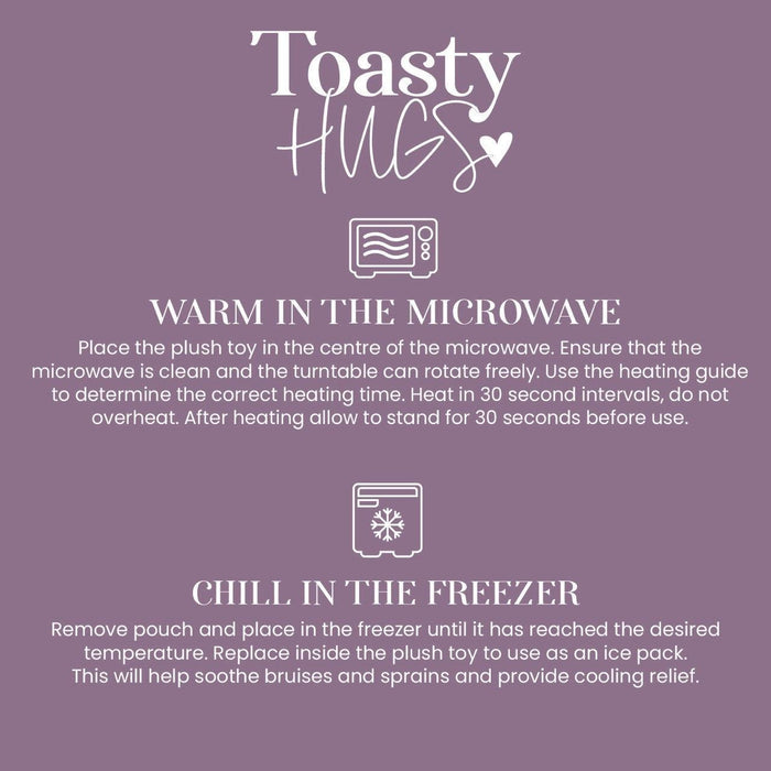 With a removable heat pack, you can easily warm up your Toasty Hugs in the microwave for comforting warmth or cool them down in the freezer for a refreshing chill. No matter the season or your mood, Toasty Hugs have got you covered!